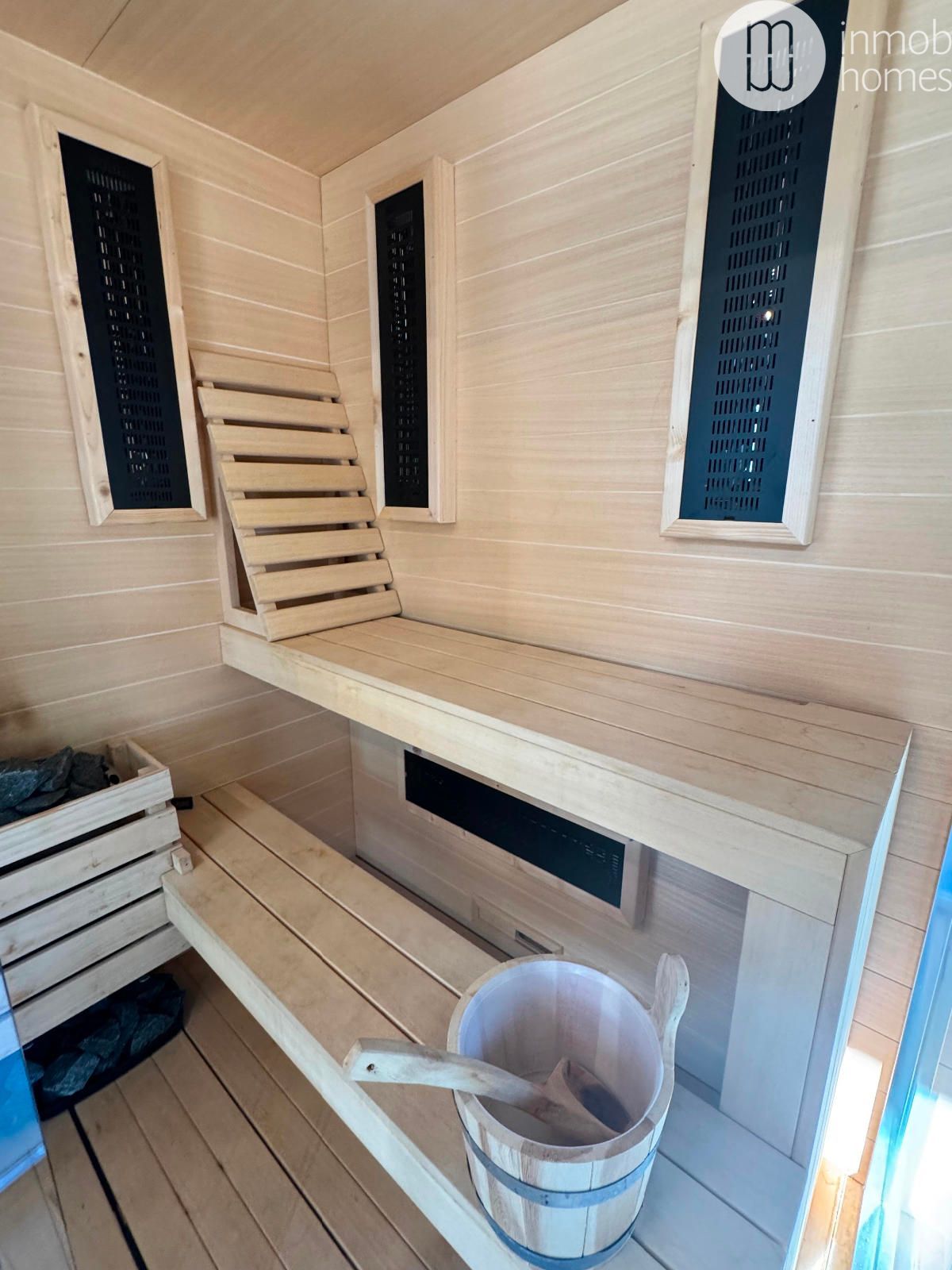 En la planta superior, la vivienda alberga una exclusiva zona wellness, que incluye gimnasio privado con vistas, sauna, cámara criogénica y un elegante solárium, convirtiendo la casa en un verdadero espacio de bienestar y cuidado personal.