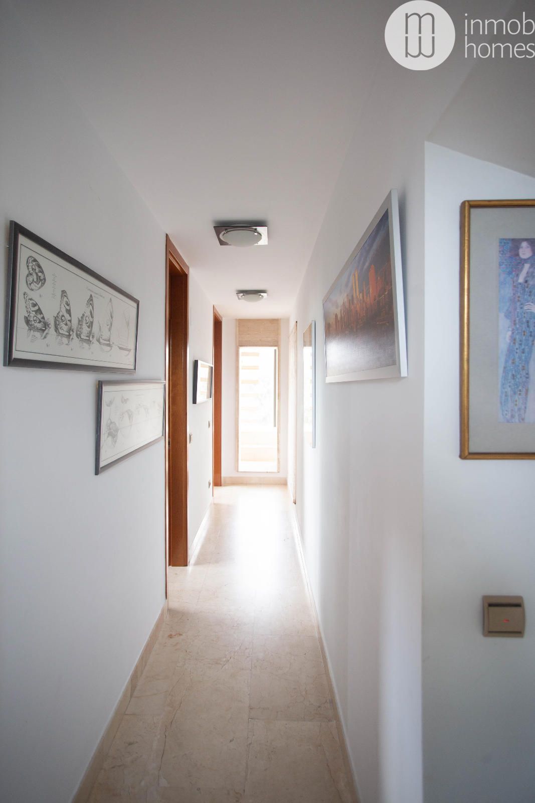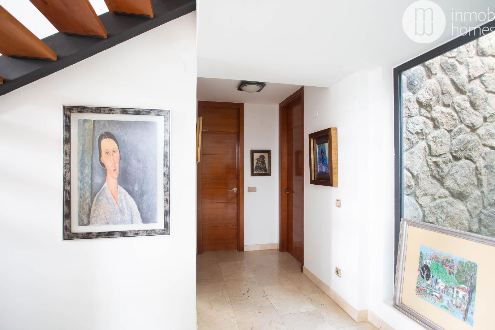 espacios. La fachada de mármol travertino, las ventanas Climalit, las persianas eléctricas y la