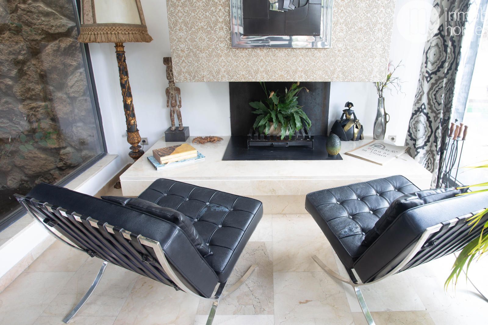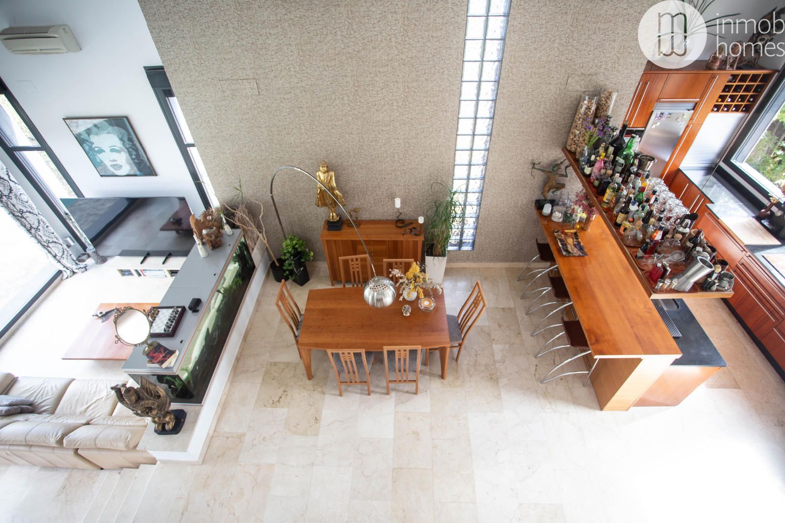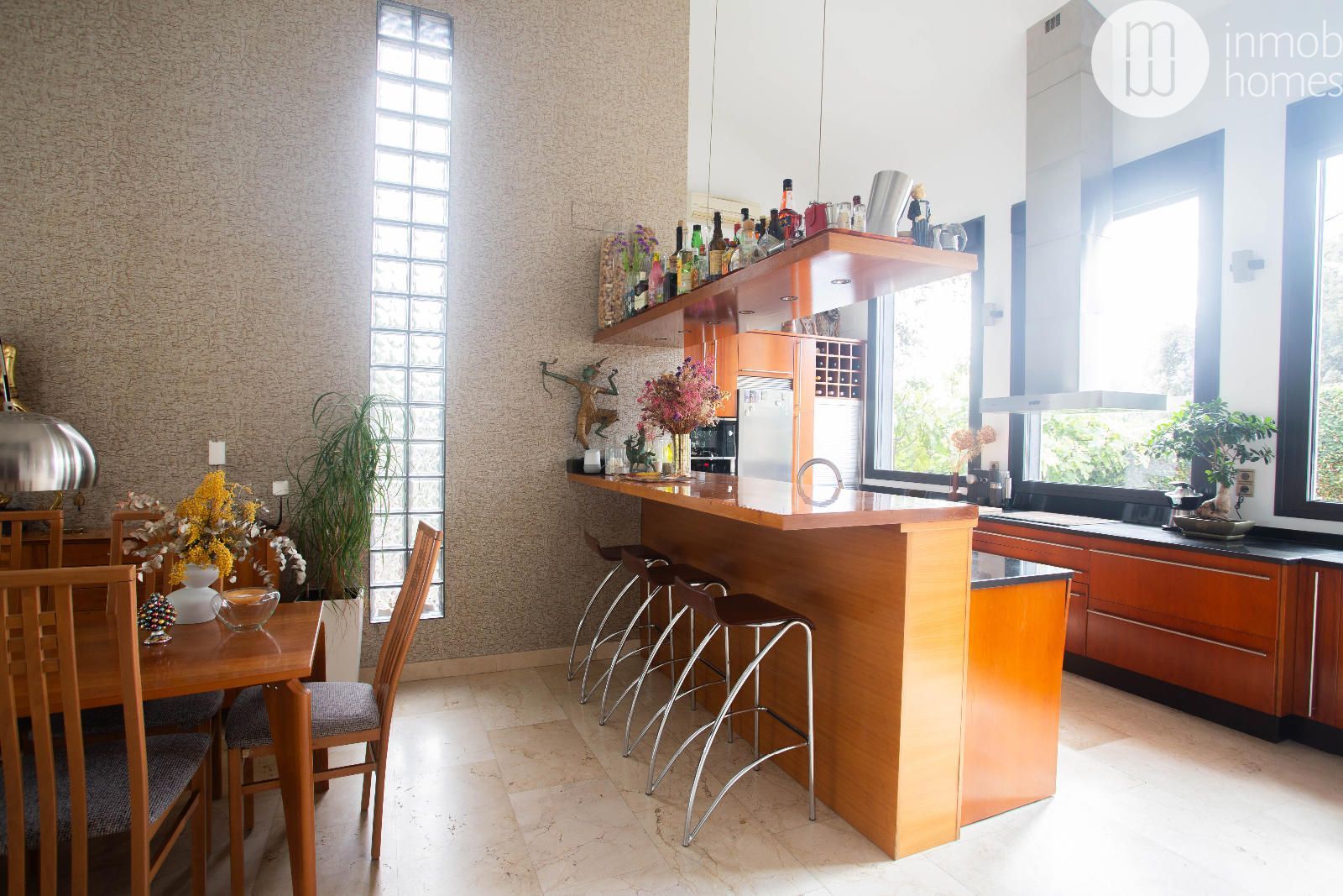 inundan el salón principal de luz natural. El salón con chimenea se conecta con una cocina