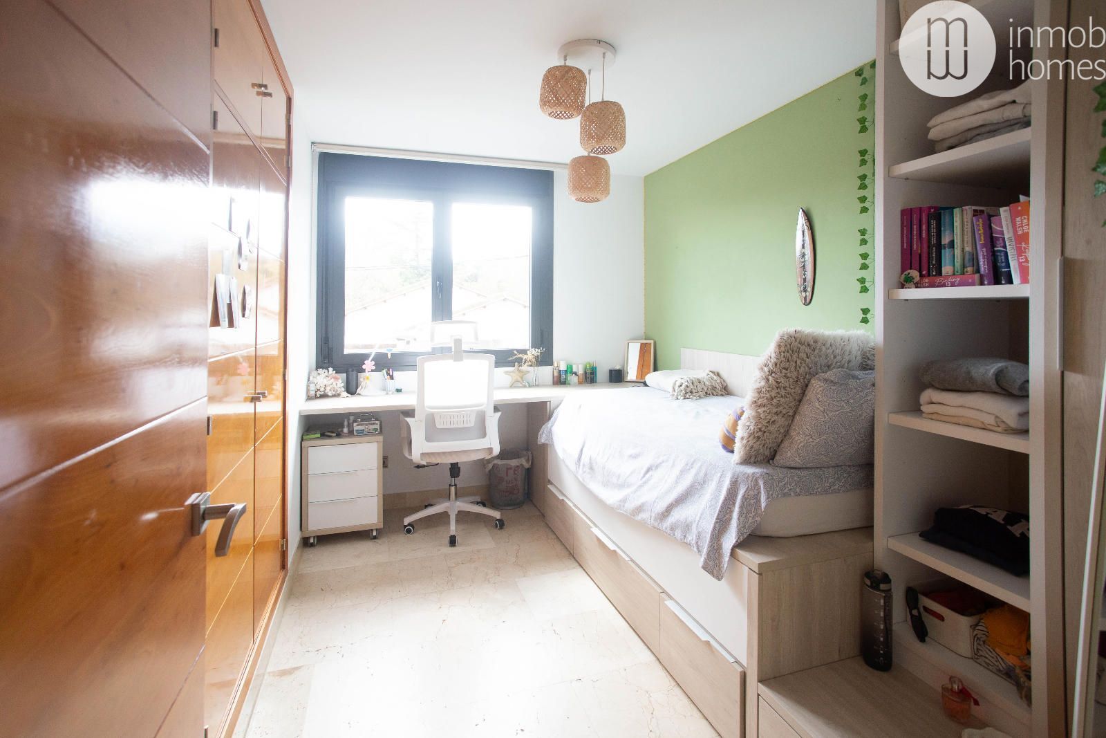La buhardilla ofrece un espacio polivalente ideal para despacho, gimnasio o sala de lectura,