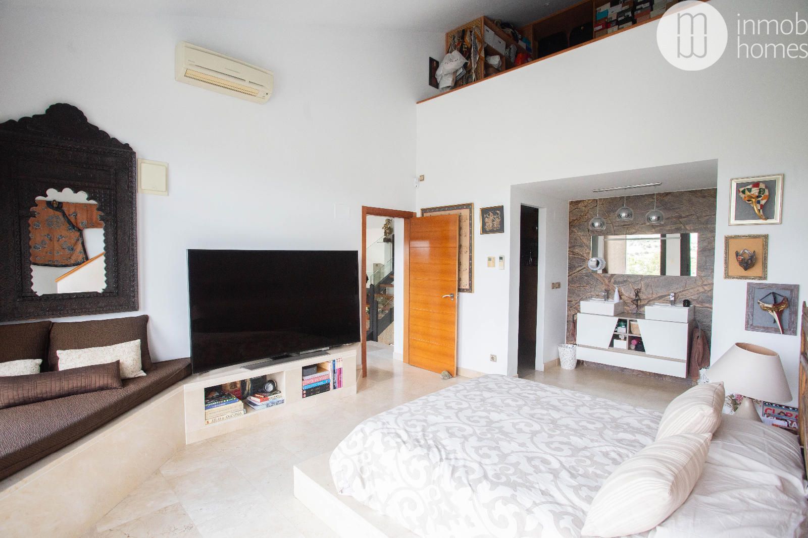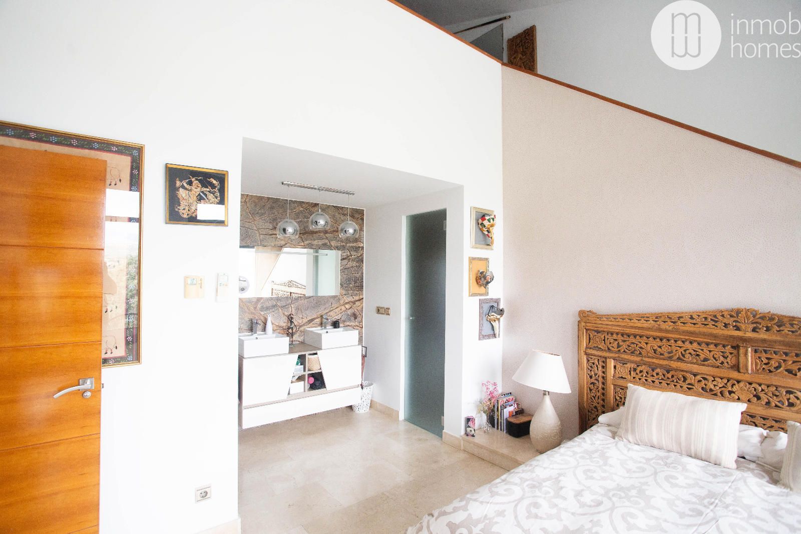 La suite principal, ubicada en una entreplanta, es un auténtico refugio privado con terraza,