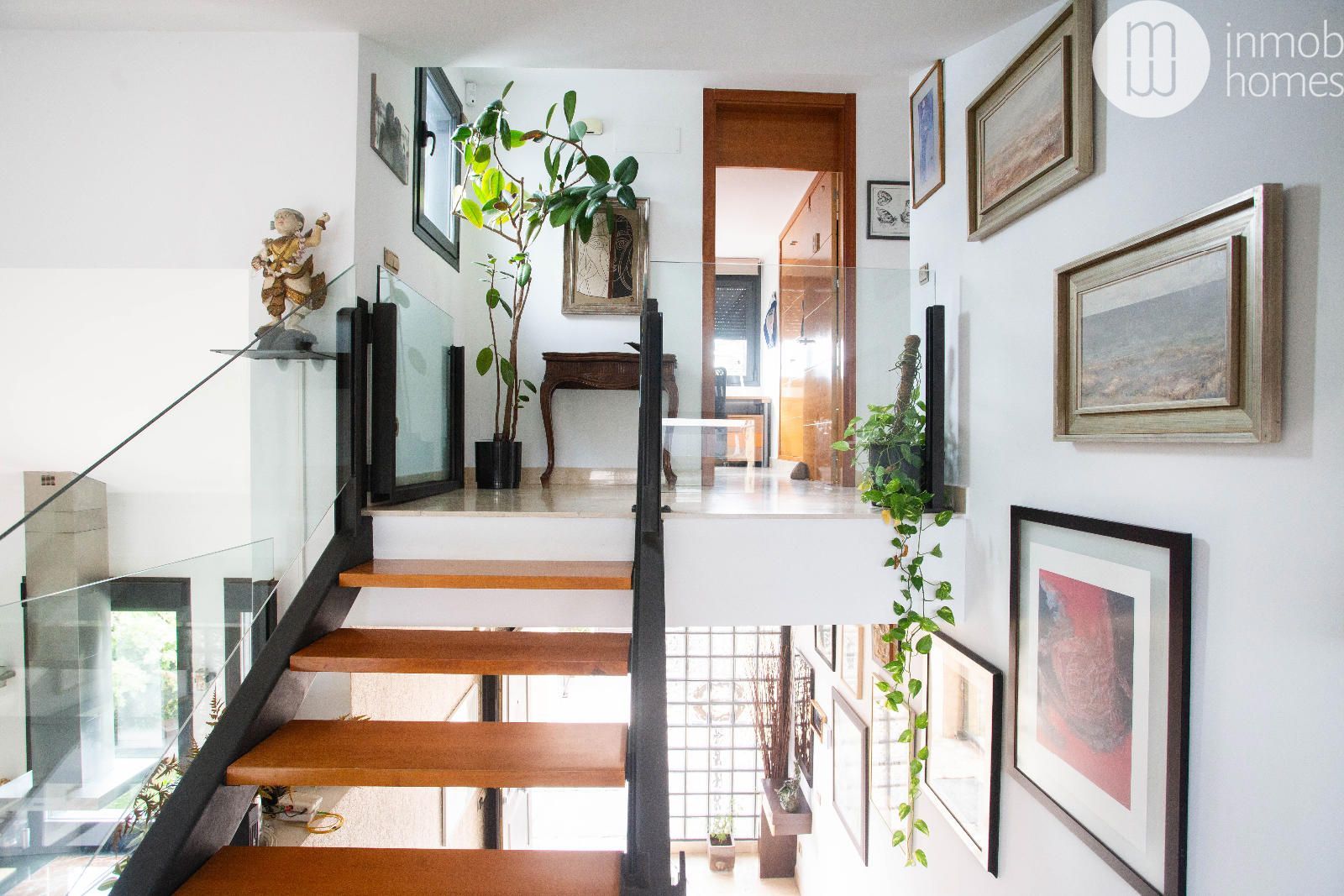 La planta baja destaca por su amplitud y luminosidad, con ventanales de suelo a techo que
