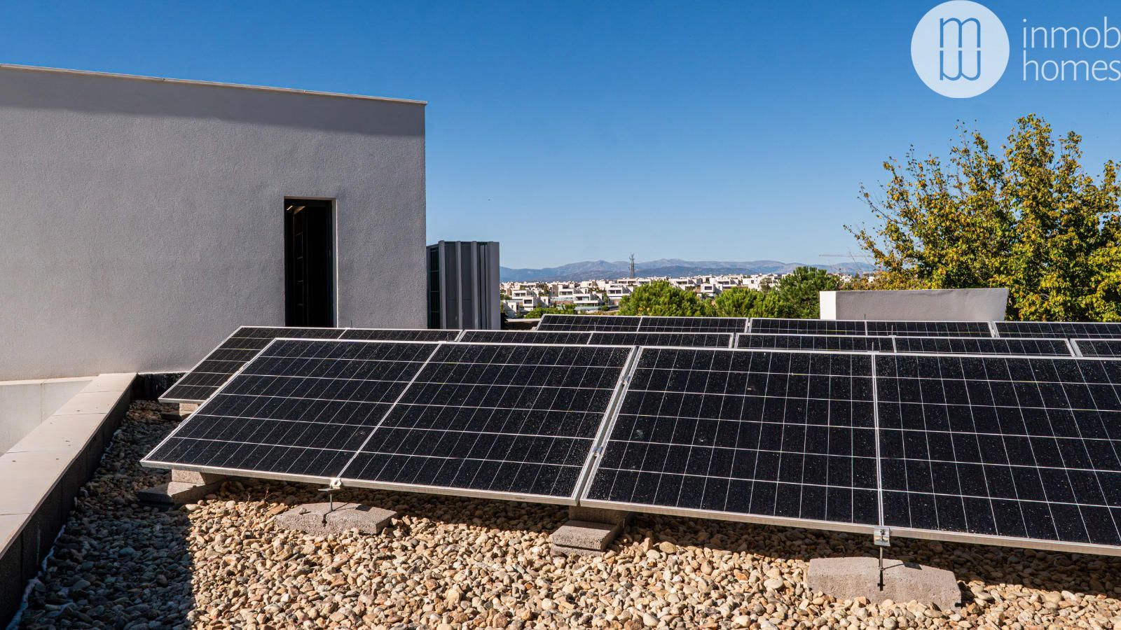 Instalación fotovoltaica completa por medio de paneles solares en cubierta.