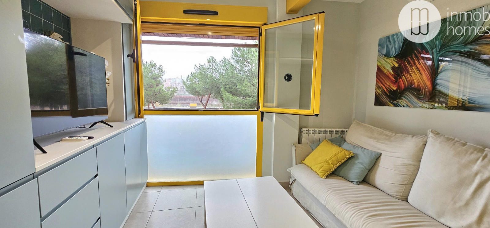 Estudio moderno y reformado en Avenida de Manzanares, Madrid. Amueblado y listo para entrar. Estilo minimalista, con vistas al parque Madrid Río y al Matadero. Junto al centro comercial Plaza Río 2, rodeado de comercios y servicios. Metro Legazpi a 12 minutos andando.